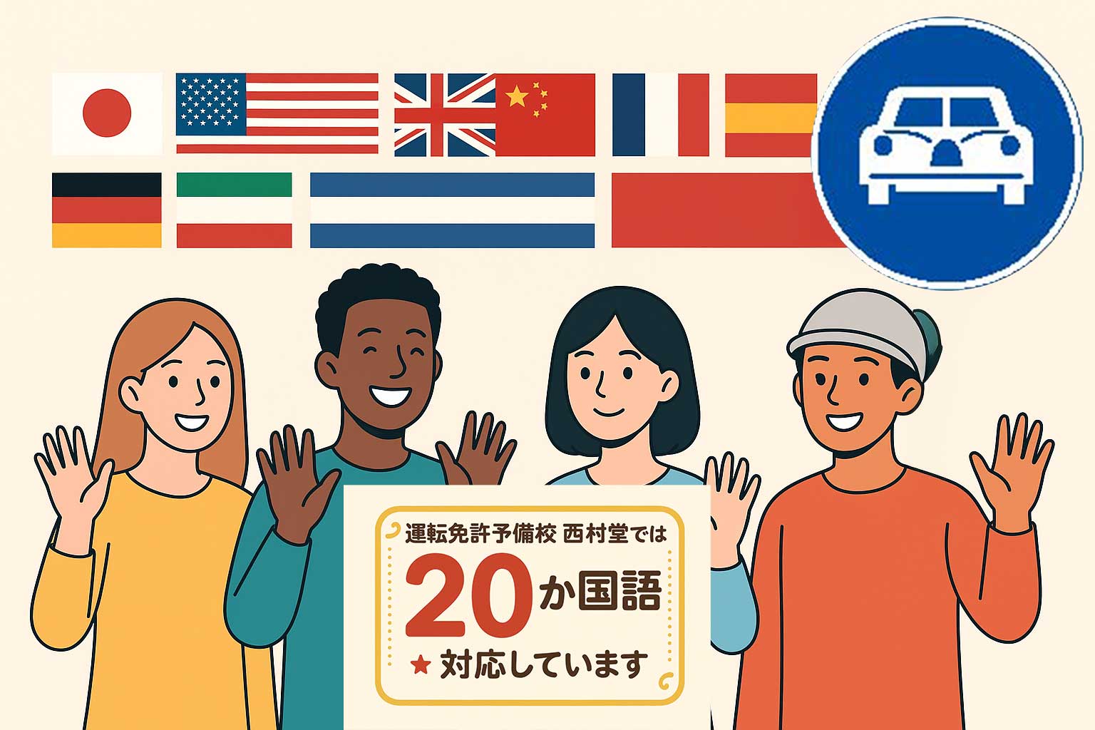 運転免許予備校西村堂では、日本語で受験される方のほか、各言語に対応しています。